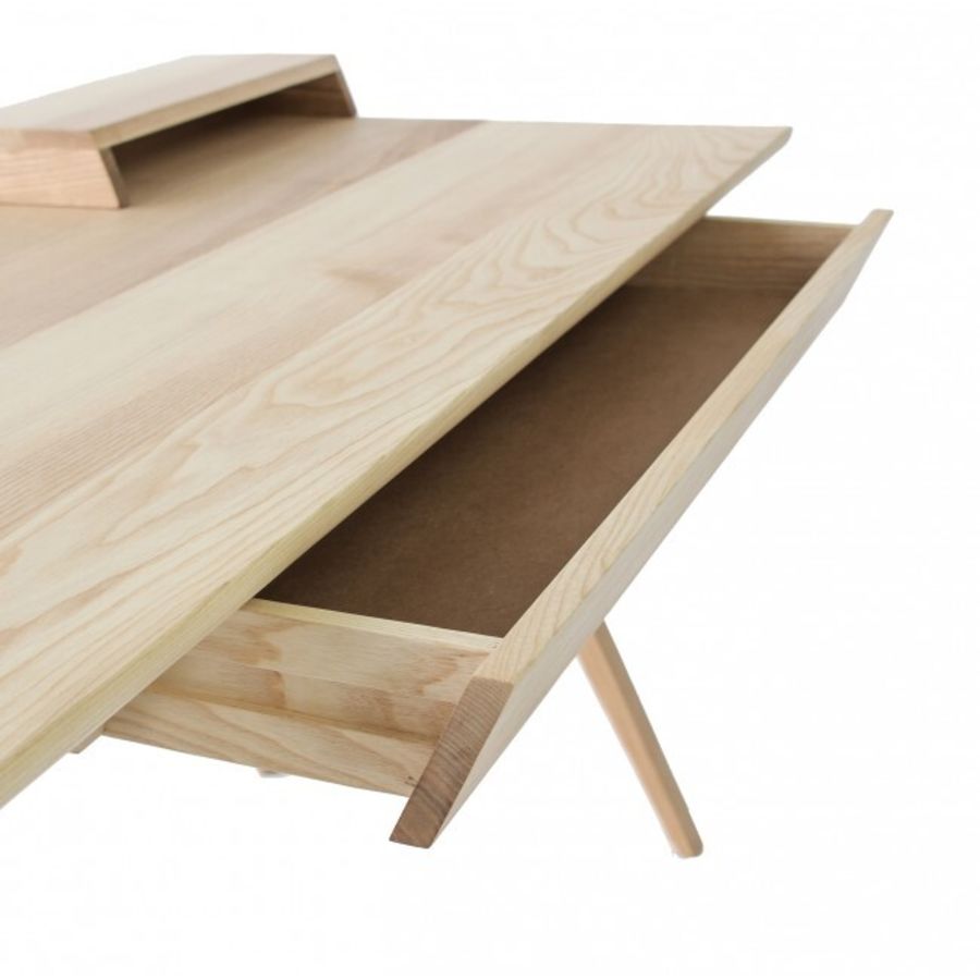 The elegant handmade desktop is not just beautiful, it is also full of practical details. Douglas Desk is inspired by classic Scandinavian design but with practical functions so that the desktop suits a modern workplace. With enough space for a monitor on the left side, and a small shelf to keep papers in order. Under the table top is an integrated drawer for the most important stuff.
