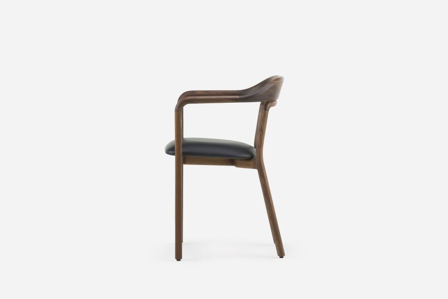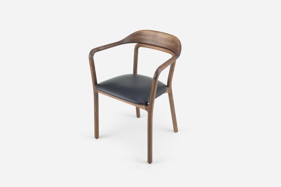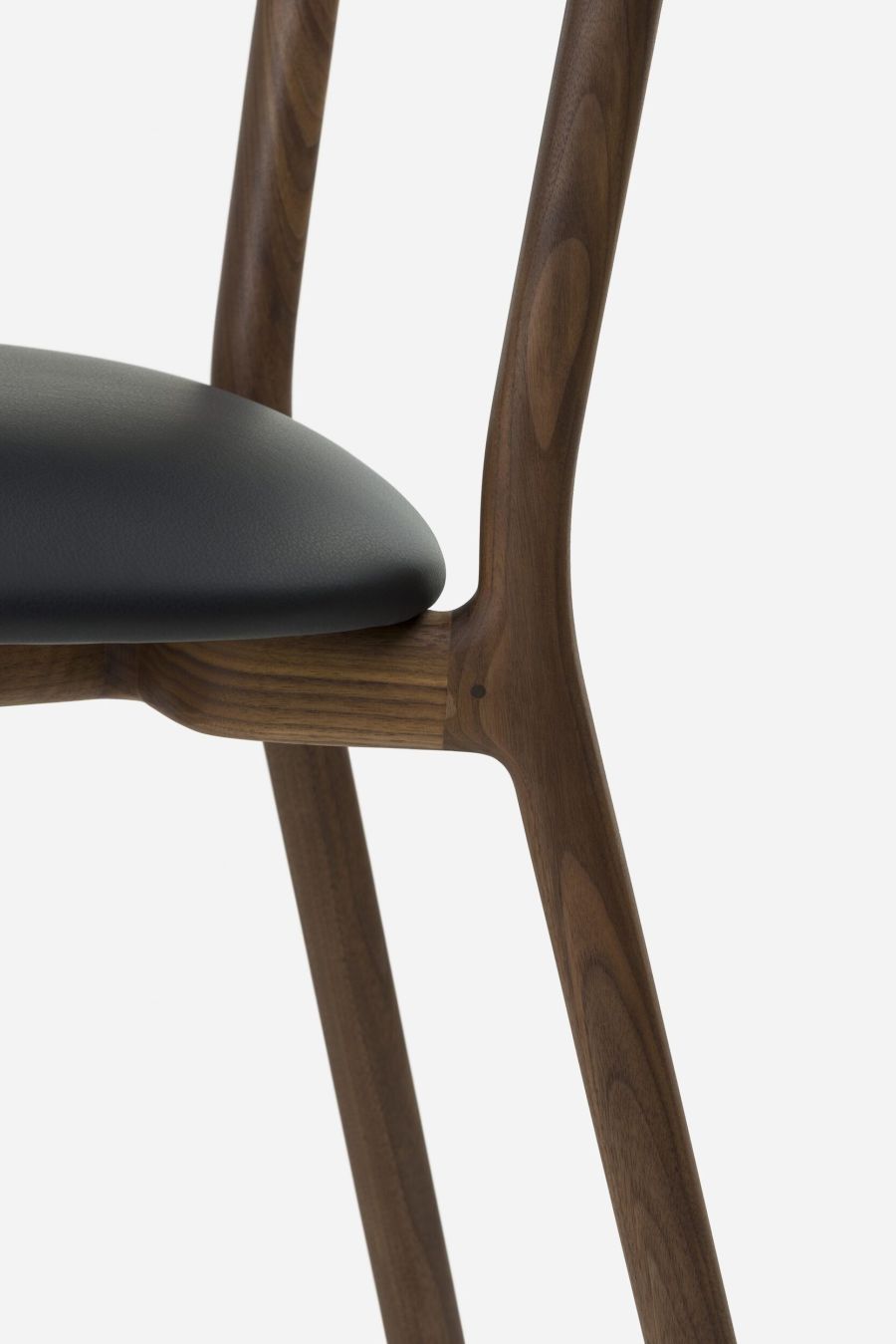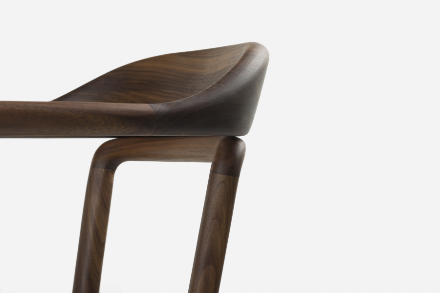 The Duet is named for the two flowing lines of timber that form the overall shape. The chair is made by hand from a series of carved wood components, joined with mortise and tenon, creating the appearance of two continuous curves. It’s graceful demeanor pays homage to it’s inspiration, the Thonet bent-wood.