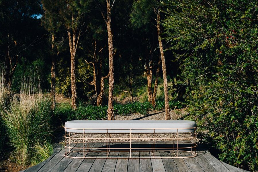 the ellis straight bench with radius ends is australian made with a stainless steel frame and upholstered seat. specified powder coat finish to frame and australian reticulated exterior foam and specified upholstery to seat pad.