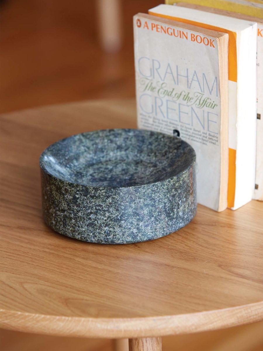The carefully considered Grove Tall Marble Dish features a refined, sculptural form that gives the illusion of lightness to its marble materiality. The complex tones of this dish are reminiscent of the rich forest floor, as seen from above.