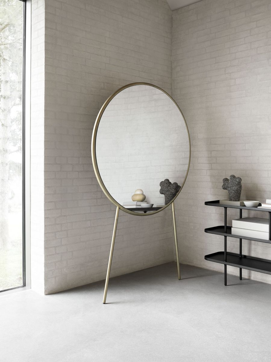 The Mondo mirror is available in a wall-mounted or free-standing version. Both include a detail on the back for hanging your clothes.