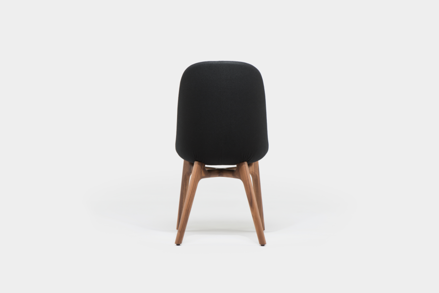 Taking inspiration from the Eames Shell chair, the Solo chair exudes sophistication and comfort and is suitable for both domestic and commercial settings. Solo chair has an upholstered shell that hugs the sitting body to create a microcosmic universe for the person, becoming an object of shelter and refuge, where the person can be “solo” and undisturbed while being hugged in this position.
