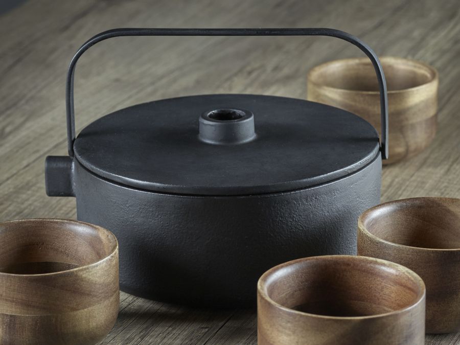 The Collage teapot is a contemporary version of the traditional Japanese teapot. Through the recess in the lid, the aroma of fresh herbs subtly fills the room. The cast-iron teapot has a matt finish on the exterior and glossy enamel on the interior.