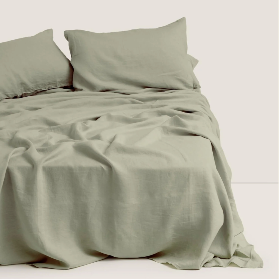 Carlotta + Gee Linen Flat Sheet in Sage Queen