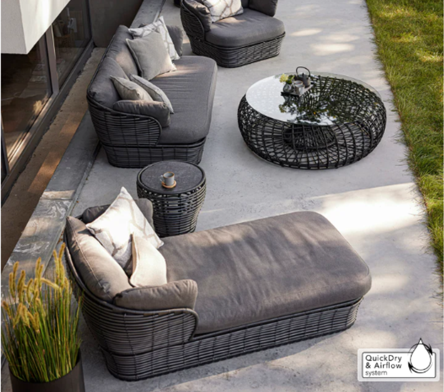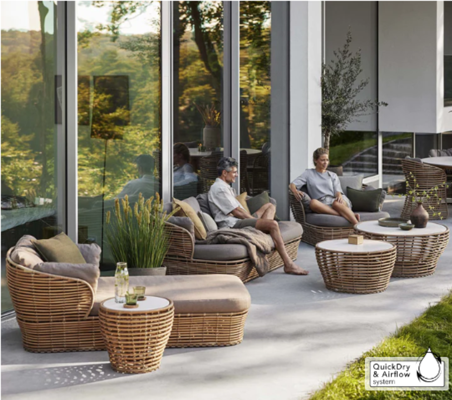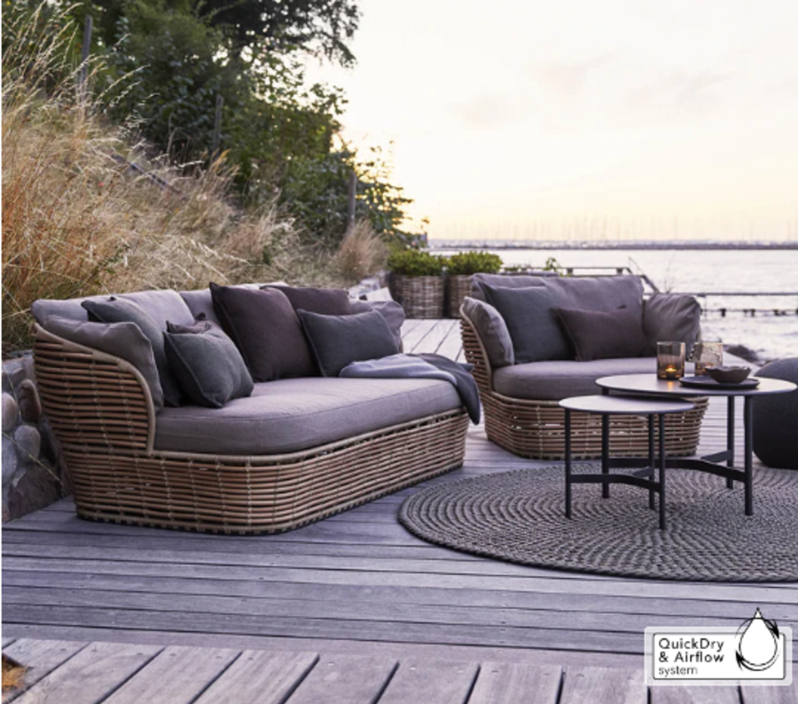 The supremely comfortable Basket lounge chair is designed by Søren Rose Studio. Basket’s design draws inspiration from classic wicker furniture, but with Cane-line’s sturdy materials it can be safely used in the garden. With its powder coated steel frame and sturdy weatherproof Cane-line Weave® in a rattan-like colour, the Basket lounge chair offers an inviting natural appearance. The cushions feature the Cane-line QuickDry & Airflow system, providing excellent comfort while ensuring that the lounge chair dries quickly after a downpour. With its roomy deep seat cushion, the Basket lounge chair is ideal for cosy relaxation. The Basket lounge chair will quickly become your favourite cosy corner on the terrace.