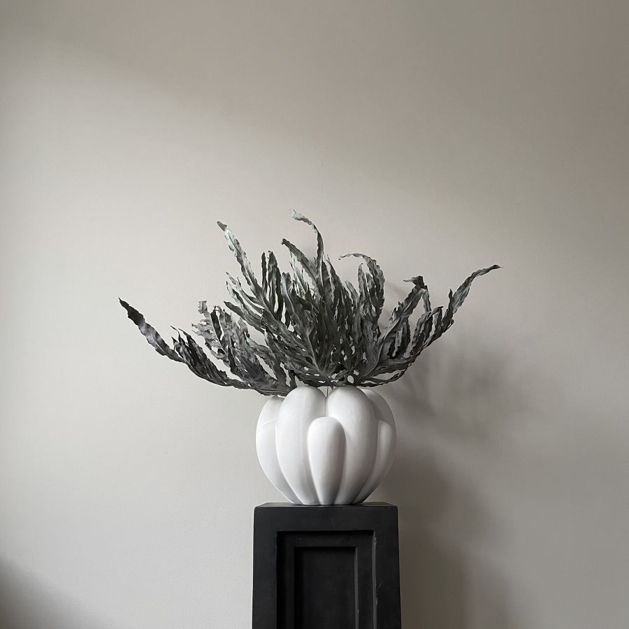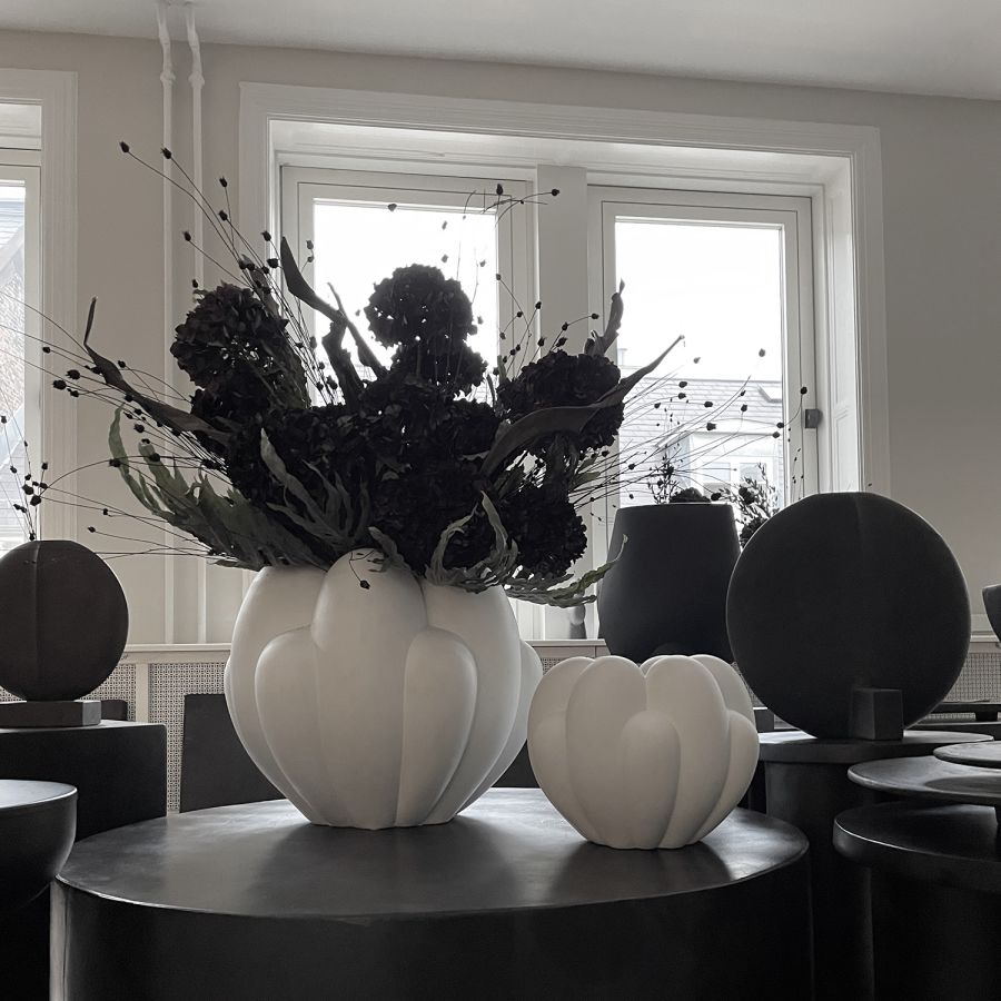 Bloom is an interpretation of 70s floral inspired design. But with a more raw and clean expression. The smoothly curved surface is contrasted by a strong underlying geometry and is enriched by a beautiful play of shadows around the depths of the surface. Due to its expressive design, the Bloom vases changes experience throughout the day, according to the position of light and shadows.
