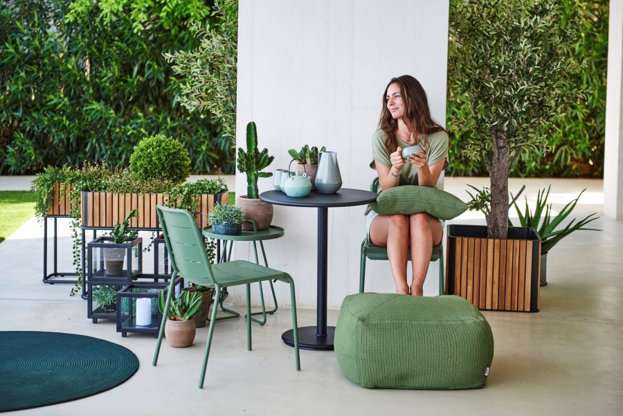 The idea behind the coloured lightweight aluminium chair is that the furniture should be a fresh and casual breath in the often very neutral outdoor furniture universe, – both in respect of colours and the modern and light look. In addition, the furniture occupies less than traditional outdoor furniture and has a good sitting comfort. Copenhagen city chair requires minimal of maintenance and cleaning and has a long lifespan.