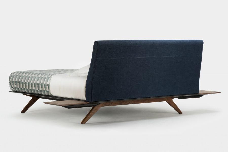 The Hepburn side table is made from solid wood and connects intuitively to the underside of the Hepburn bed on the right or left hand side. The slender surface maintains the levity of the Hepburn Bed while providing essential bedtime storage.
