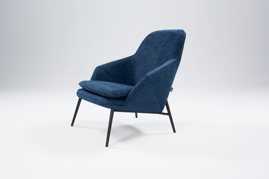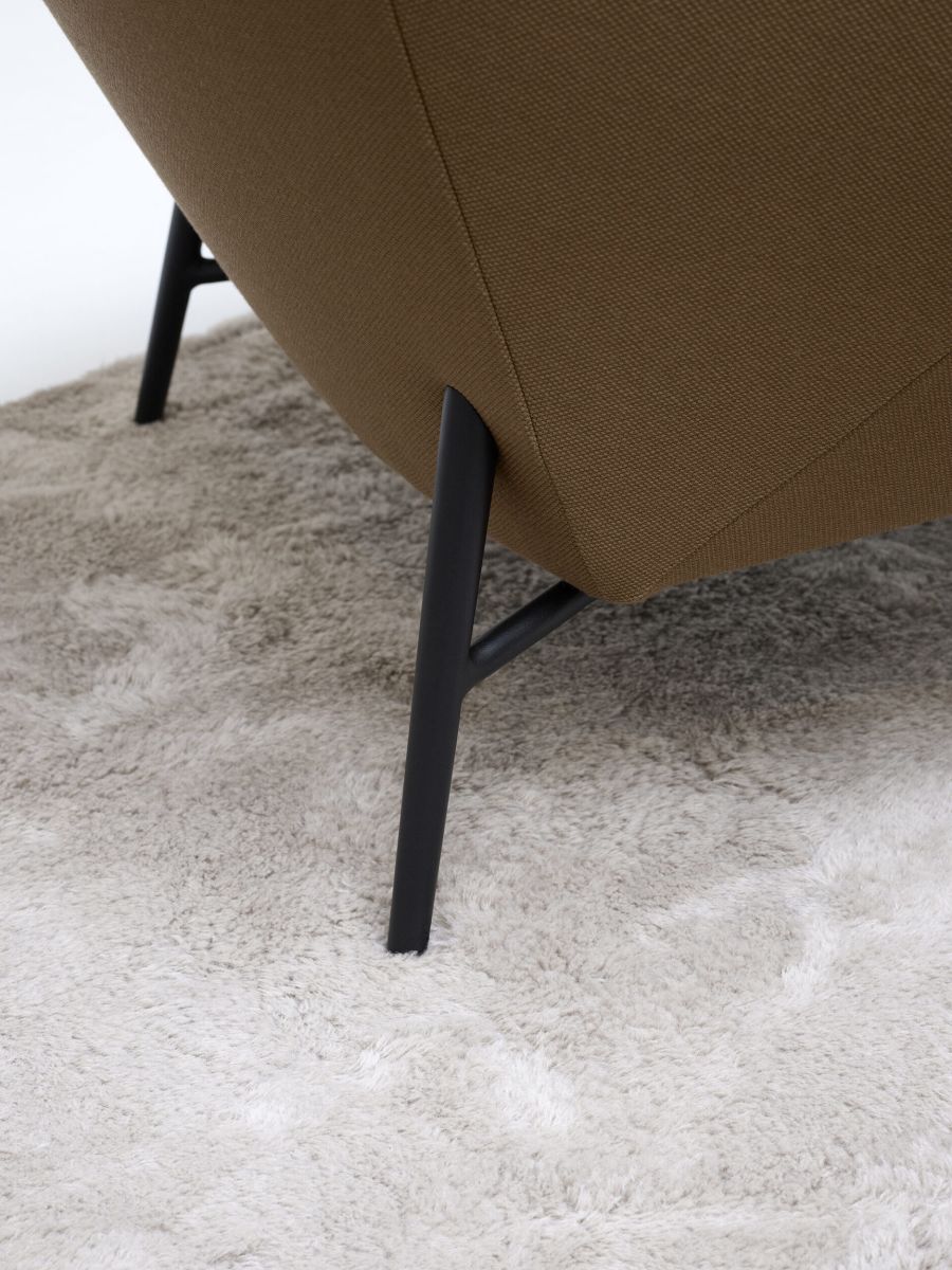 LEGS: Black powder coated steel.Material STRUCTURE INTERIOR: Frame made of solid wood and MDF, with webbing spring system STRUCTURE PADDING: High resilient variable density polyurethane foam. SEAT CUSHION: High resilient polyurethane foam. Wrap of fibre-fill on top. BACK: High resilient polyurethane foam. Wrap of fibre-fill on top. COVER: Fixed. LEGS: Black powder coated steel. - Downloads