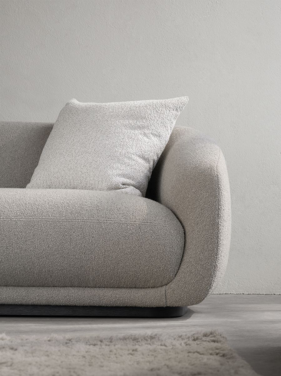 Resting atop a recessed base, the corpus of the Montholon design seemingly soars above ground, prompting a lighter sentiment to the voluminous proportions while awakening the senses with inviting curves and the soothing softness of tactile topography.