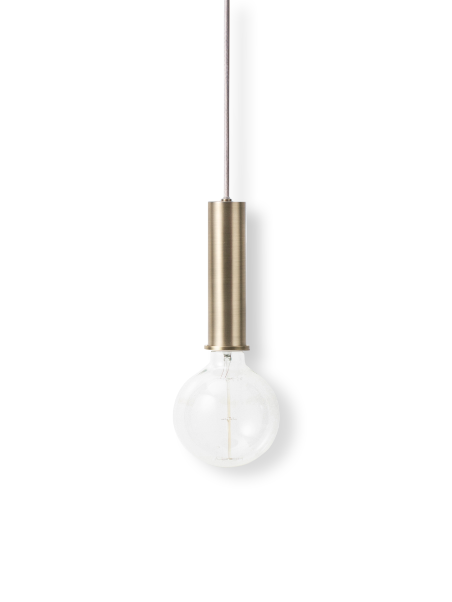 This sleek barrel fixture forms the core of the COLLECT Lighting series. This long pendant can be used alone with a decorative bulb to create ambient lighting or together with any one of the lampshades in the series to illuminate your chosen room to suit your style and mood. The socket pendant comes complete with a decorative brass ring, dark blue ceiling cup and a 3 m fabric cord.