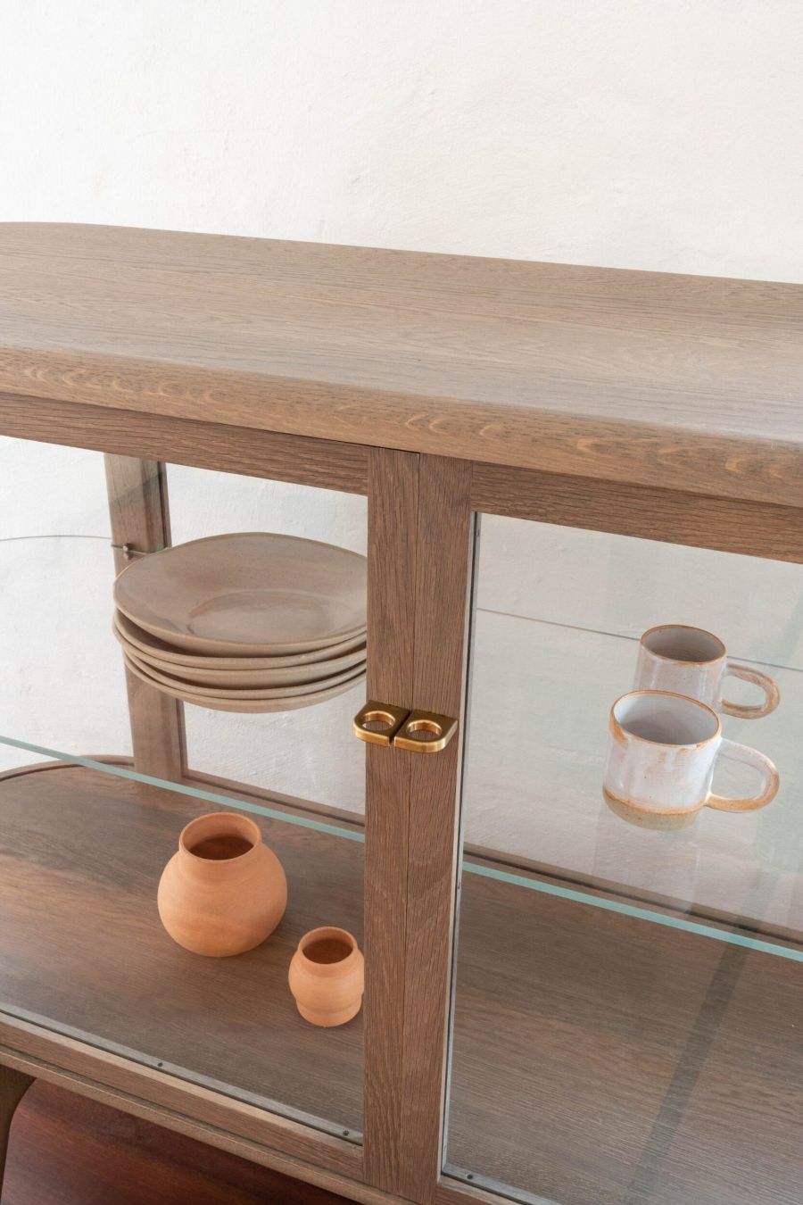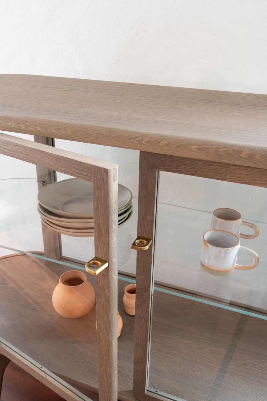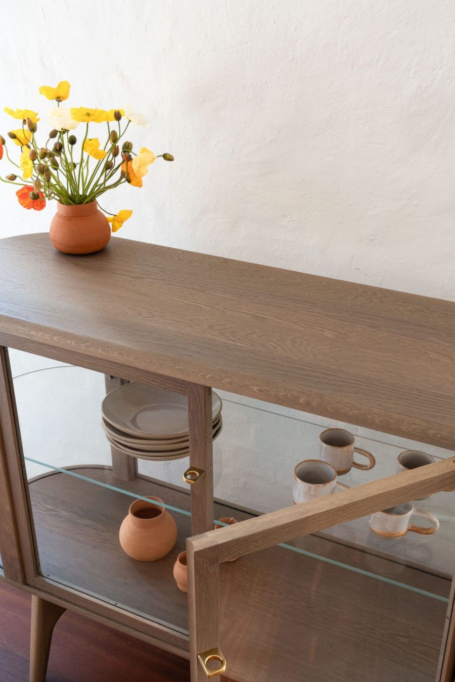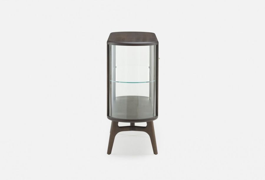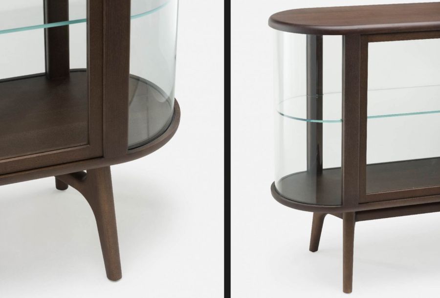 The Solo Vitrine cabinet highlights De La Espada’s craftsmanship through the curved glass that integrates harmoniously with the solid timber frame. The large areas of clear glass and clear glass shelves allow the objects on display to be the visual highlight.