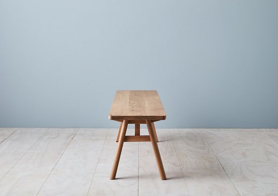 The Tuki bench seat plays on the trestle table style structure however in a more refined manner. The Tuki bench borrows the subtly shaped legs that feature across the Tuki range and is shown here with a Drift oil finish.