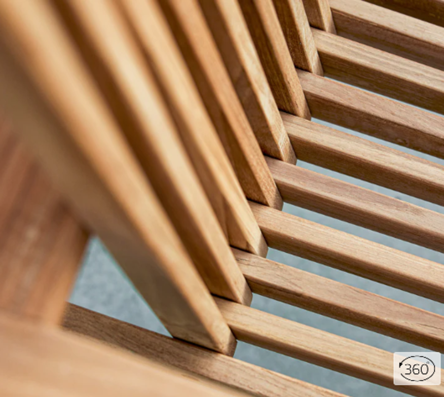 The sofa is a solid piece of furniture. The Amaze sofa can also be used with other products in the Amaze collection or mixed with other Cane-line products – the possibilities are many. You can keep the sofa untreated, in which case the sofa will eventually get a nice grey patina and it only requires minimal cleaning. Alternatively, the sofa can be cleaned and oiled with a suitable teak oil. Depending on the climate the sofa is facing, there is a need for the sofa to be oiled at least twice a year. Cane-line teak is approved and cultivated according to the SVLK certification system. Note that Amaze teak sofa requires 2 cushions.