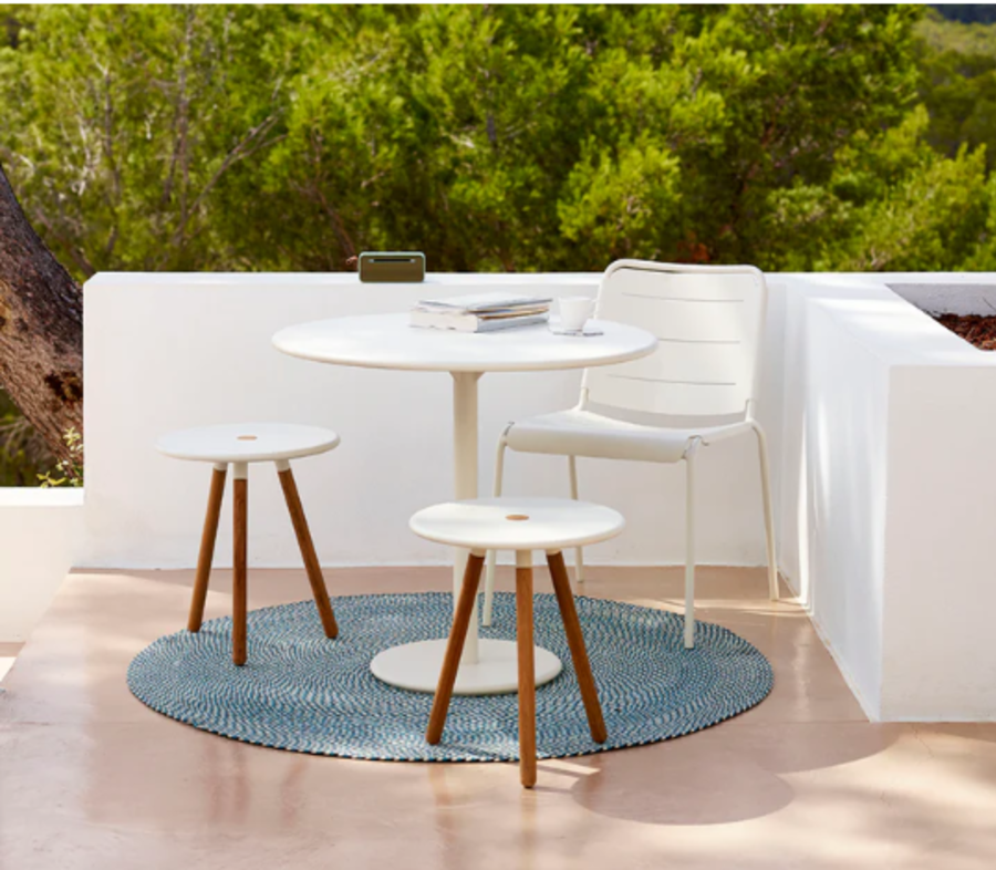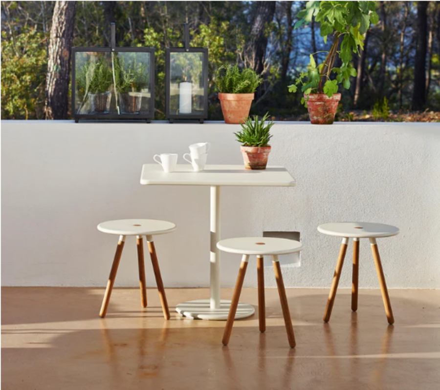The Area stool / side table is modern and elegant in its appearance. Area is an innovative and multifunctional design that combines a seating with a table function. You decide how to use the product – whether it is to be used indoors or outdoors, as a side table, chair / stool or perhaps even a footstool. There possibilities are many. Choose between a black or white aluminium top combined with warm teak legs. Cane-line teak is approved and cultivated according to the SVLK certification system.