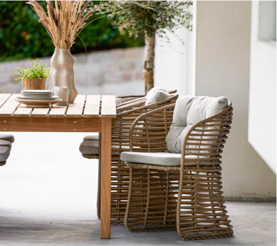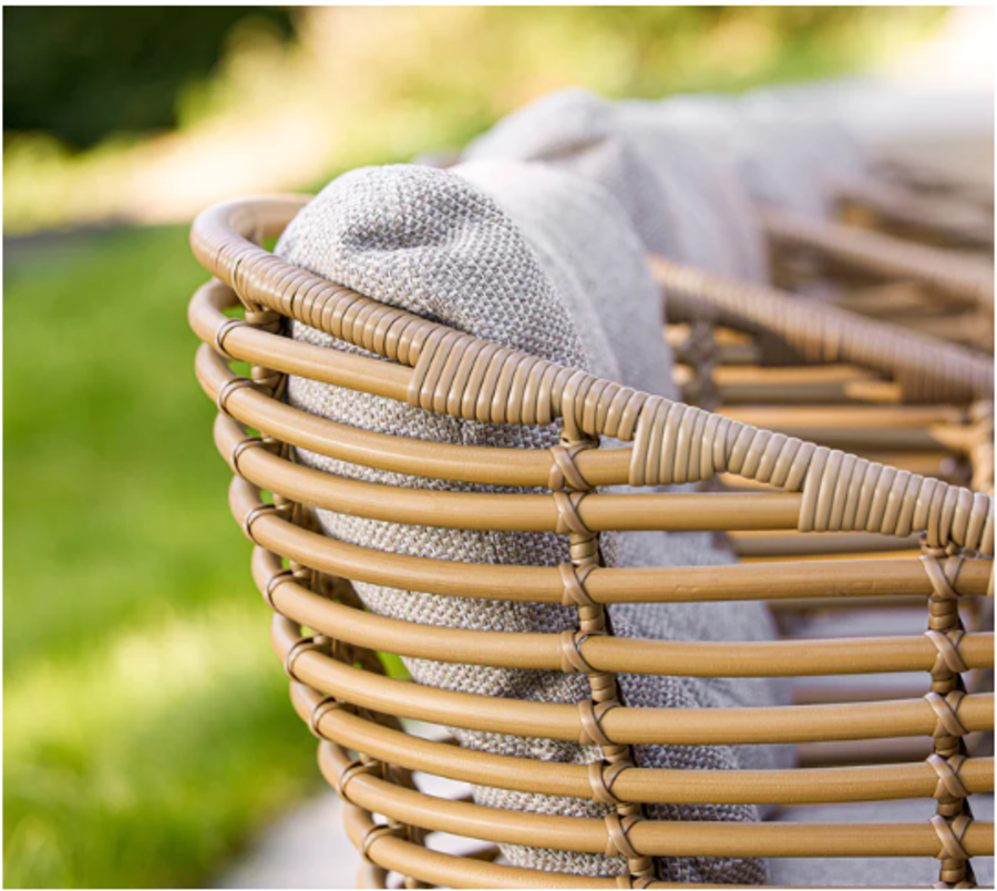 Basket is a unique dining chair characterized by its sculptural shape and remarkable design appearance. The dining chair has an organic and natural expression with eye-catching design details, such as the shell shaped backrest providing excellent seating comfort. Basket dining chair is made from the strong and durable Cane-line Weave® on a hot-dip galvanized steel frame with comfy cushions in soft Cane-line fabric. Basket is designed in collaboration with Søren Rose Studio.