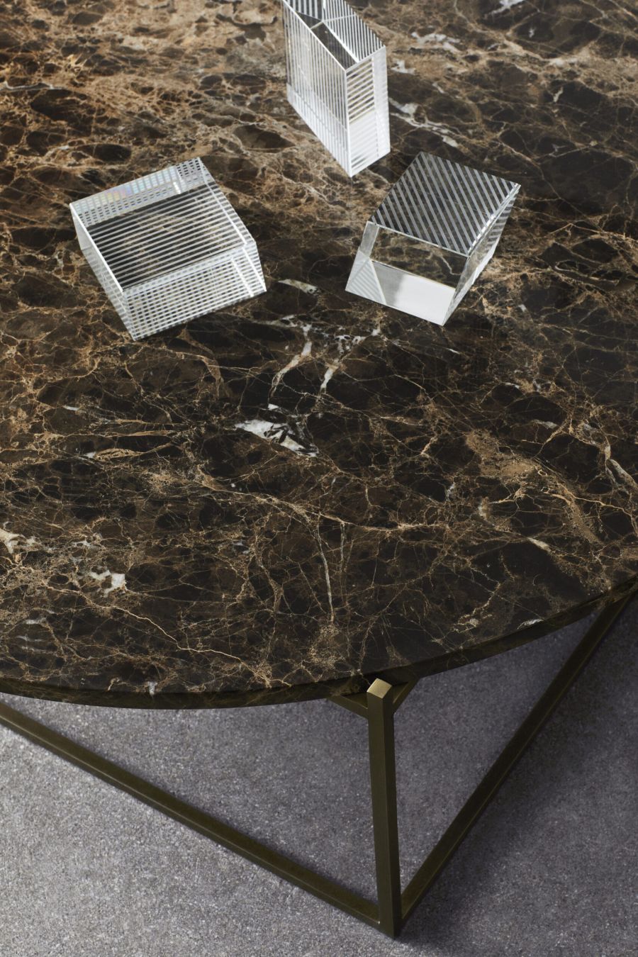 Almost a visual trick, like a frame where mass and gravity is suspended, and the slim and delicate structure support the marble top, like a hovering platform.