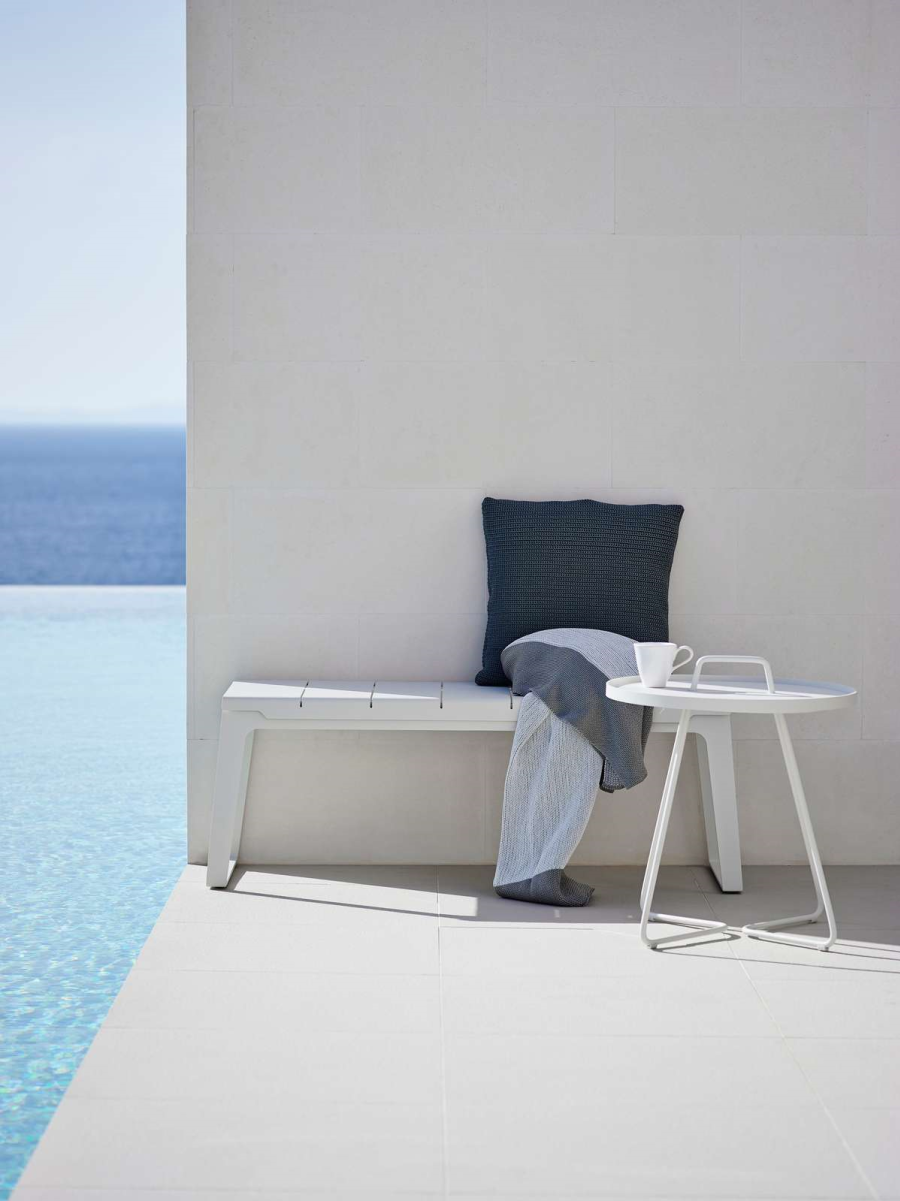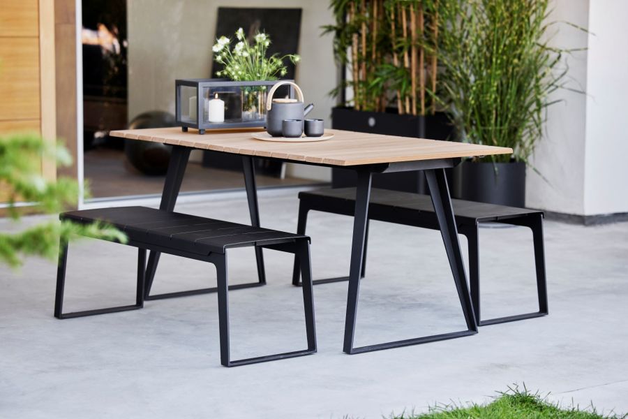 Made from powder coated and weather resistant aluminium for a clean and stylish design expression – a perfect bench for the modern outdoor space.