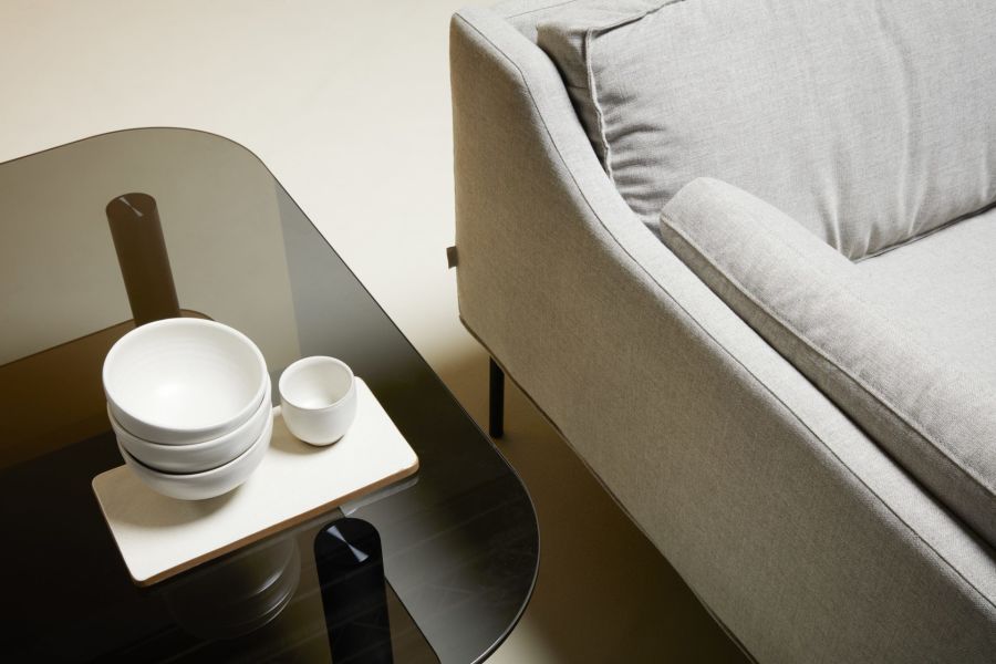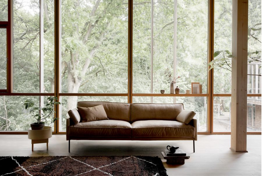 Designed with Andreas Engesvik.It is rooted in a mid-century aesthetic with clean lines and generous, wide-open seating. Comfort is key, with a backrest low enough to lean arms across and ample space for one, two or three people.