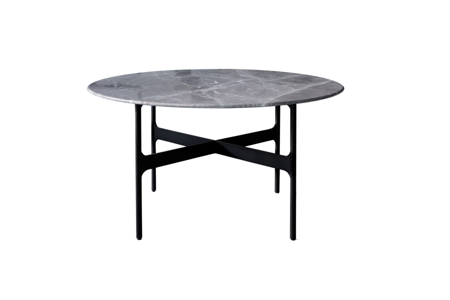 The elliptical or circle roundness of the tops available in stone or wood, mark a feature repeated in the curved details of the metal structure. In different heights and shapes, the four versions of Floema low tables offer a variety of surfaces to satisfy different needs and uses in a contract environment, from work to moments of relaxation.