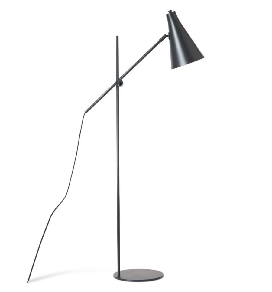 The Hunter Grand is a floor standing lamp with a strong silhouette black frame and raw brass details. Modern and clean this beautiful piece is adjustable in height and the flexible shade makes it the perfect reading lamp to relax in style.