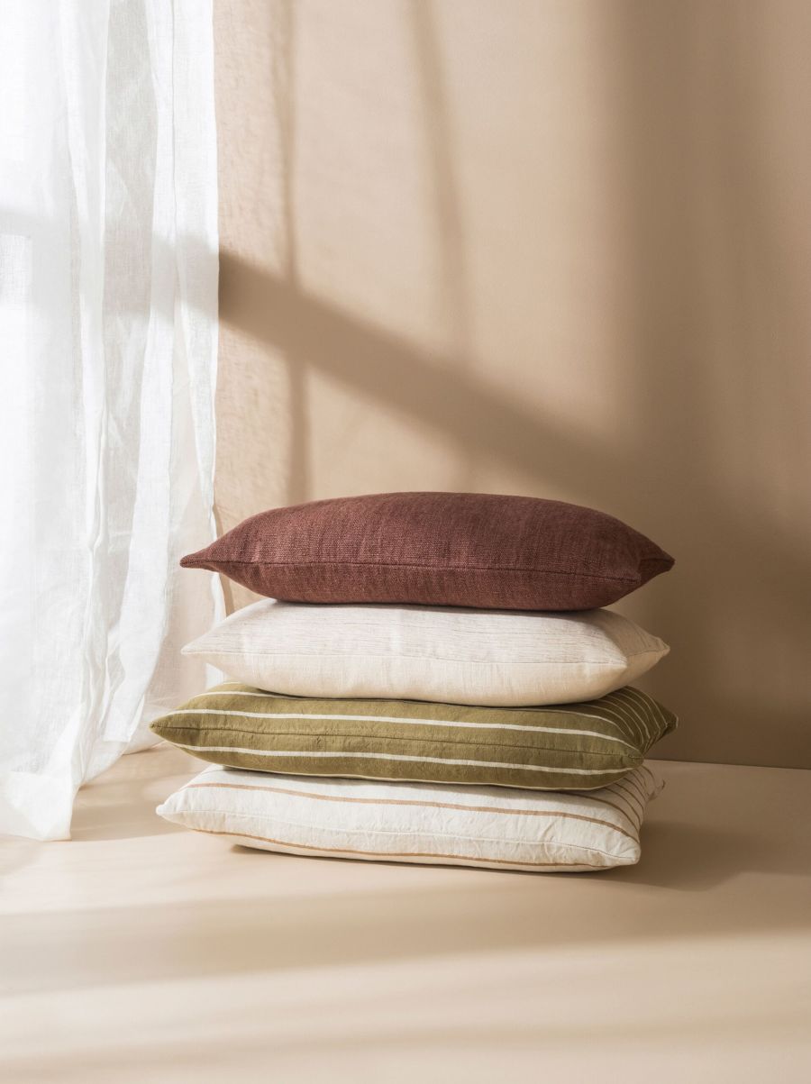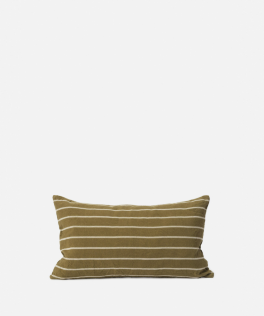 The Paloma Cushion Cover features a stripe design in pickle and natural. Made with a natural blend of hemp and cotton. Please note, cushion inners are sold separately.