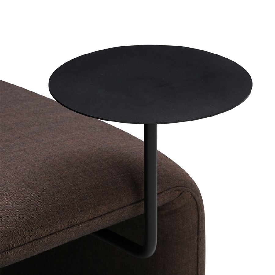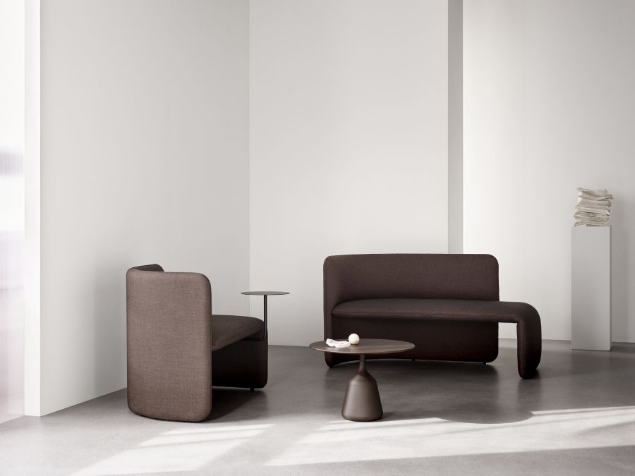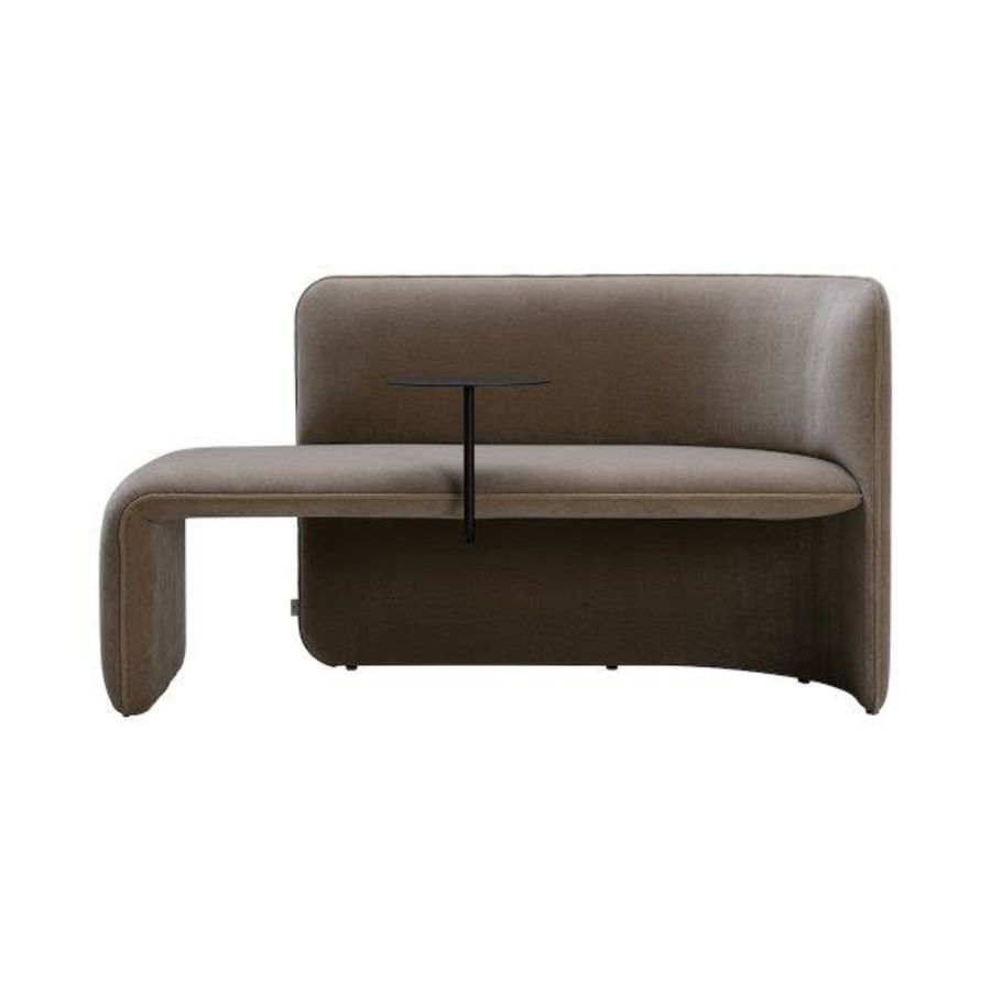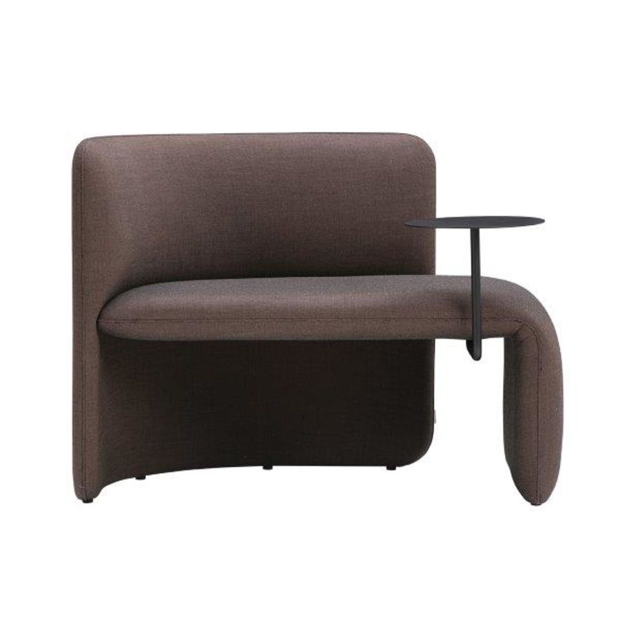 The design has a characterful persona with upholstered elements that bring a sense of softness to modern spaces, joined by the functionality of its curved back, allowing for the user to be seated at multiple positions, and the elegant side table.
